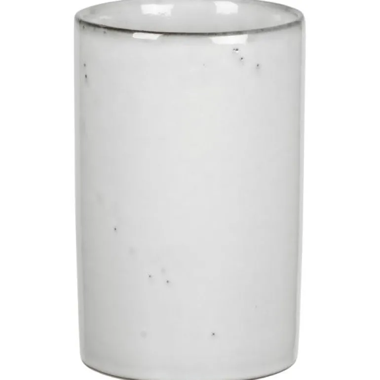 Beholder 9 cm i serien Nordic Sand, fra Broste Copenhagen. Mål:Høyde: 14,5 cmDiameter: 9 cmNordic Sand har et organisk design i naturlige sandnyanser for et mykt og allsidig utseende. Fargen på glasuren kombinert med en distinkt keramisk finish, gir kolleksjonen et unikt uttrykk som minner om den uberegnelige sanden til de forblåste nordiske strendene. Designet er enkelt, rustikt og unektelig iøynefallende. Hver del har en unik kvalitet, ettersom brenningsprosessen etterlater glasuren med varierende teksturer og farger.
