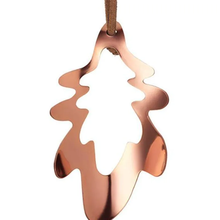 Nordic Tales eikeblad 8,5 cm kobber. La naturen komme inn med nordisk og minimalistisk pynt til treet. De stilrene ornamentene er omhyggelig utført i naturlige materialer og har alle et fint og enkelt oppheng i vegansk lær. Eikebladet symboliserer våre skiftende årstider og vinterens ankomst. Eikebladet er laget i kobber, som reflekterer lyset, slik at det oppstår en eventyrlig glans i bladets overflate.