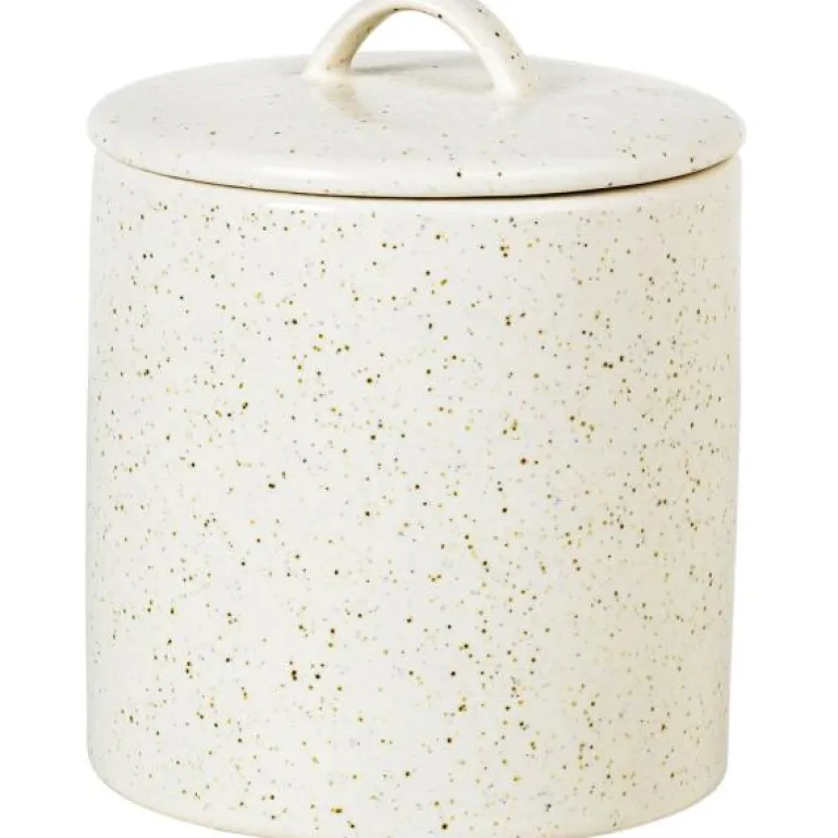 Krukke 1 liter med lokk i Nordic Vanilla serien fra Broste Copenhagen. Bruk krukken alene, eller kombiner den gjerne med de andre delene i den flotte Nordic Vanilla serien. Den kan med fordel også brukes i en herlig avslappet miks av de andre populære serivsene fra Broste Copenhagen. Spettet som vaniljemelk; den glatte, men matte overflaten, med små svarte prikker som minner om vaniljekorn, kjennetegner Nordic Vanilla. En servisekolleksjon, fra Broste Copenhagen som stammer fra de populære nordiske linjer og hengivenhet til vakker glasur og sammenhengende design.Hver del av serviset innehar egenskapene til det skandinaviske designet ved å skape en rolig og innbydende estetikk rundt ethvert måltid. Alle delene i Nordic Vanilla serien er glasert for hånd, og da glasuren reagerer på skiftene under prosessen kan variasjon i farge og form forekomme. Dette gjør ethvert produkt helt unikt. Skap en klassisk borddekning med lyse og luftige off-white nyanser og gi bordet et tidløst rolig uttrykk eller kombiner Nordic Vanilla med deler fra andre serviseserier for en borddekking som føles samlet og kuratert med en unik identitet.