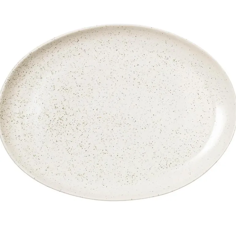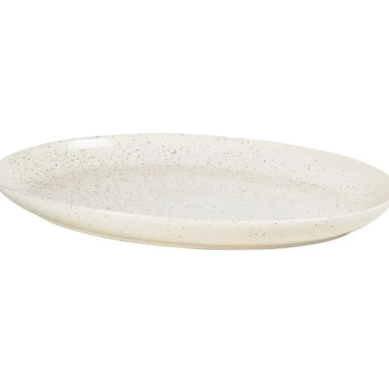 Ovalt fat 26,5×35,5 cm i Nordic Vanilla serien fra Broste Copenhagen. Bruk fatet alene, eller kombiner det gjerne med de andre servisedelene i den flotte Nordic Vanilla serien. Fatet kan med fordel også brukes i en herlig avslappet miks av de andre populære serivsene fra Broste Copenhagen. Spettet som vaniljemelk; den glatte, men matte overflaten, med små svarte prikker som minner om vaniljekorn, kjennetegner Nordic Vanilla. En servisekolleksjon, fra Broste Copenhagen som stammer fra de populære nordiske linjer og hengivenhet til vakker glasur og sammenhengende design.Hver del av serviset innehar egenskapene til det skandinaviske designet ved å skape en rolig og innbydende estetikk rundt ethvert måltid. Alle delene i Nordic Vanilla serien er glasert for hånd, og da glasuren reagerer på skiftene under prosessen kan variasjon i farge og form forekomme. Dette gjør ethvert produkt helt unikt. Skap en klassisk borddekning med lyse og luftige off-white nyanser og gi bordet et tidløst rolig uttrykk eller kombiner Nordic Vanilla med deler fra andre serviseserier for en borddekking som føles samlet og kuratert med en unik identitet.