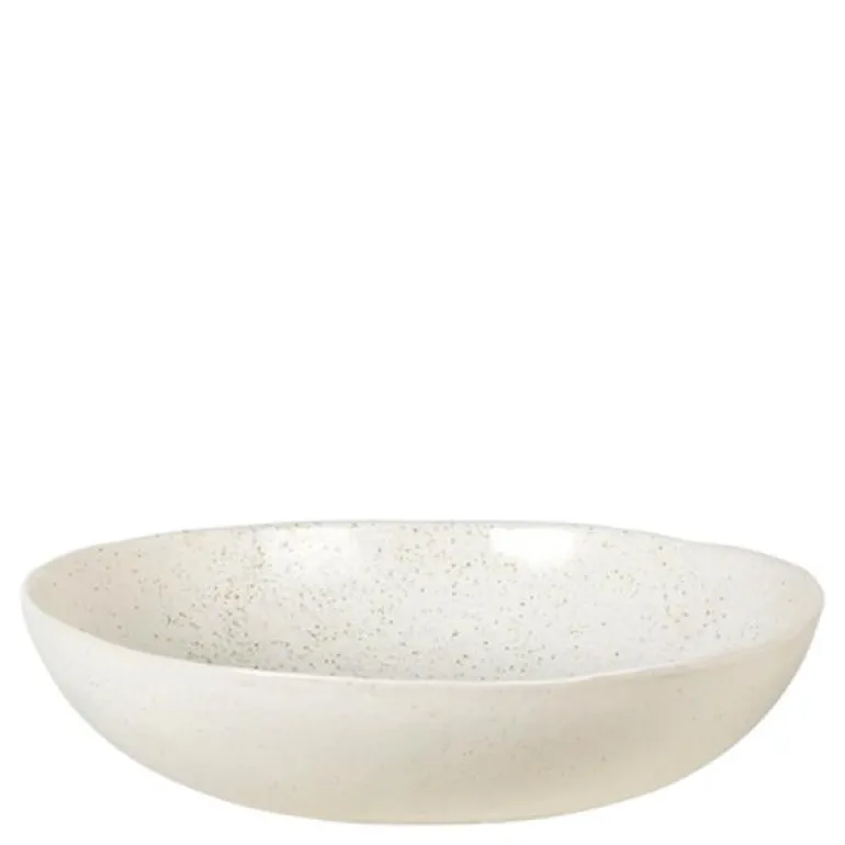 Salatskål 34 cm i Nordic Vanilla serien fra Broste Copenhagen. Bruk skålen alene, eller kombiner den gjerne med de andre servisedelene i den flotte Nordic Vanilla serien. Skålen kan med fordel også brukes i en herlig avslappet miks av de andre populære serivsene fra Broste Copenhagen. Spettet som vaniljemelk; den glatte, men matte overflaten, med små svarte prikker som minner om vaniljekorn, kjennetegner Nordic Vanilla. En servisekolleksjon, fra Broste Copenhagen som stammer fra de populære nordiske linjer og hengivenhet til vakker glasur og sammenhengende design.Hver del av serviset innehar egenskapene til det skandinaviske designet ved å skape en rolig og innbydende estetikk rundt ethvert måltid. Alle delene i Nordic Vanilla serien er glasert for hånd, og da glasuren reagerer på skiftene under prosessen kan variasjon i farge og form forekomme. Dette gjør ethvert produkt helt unikt. Skap en klassisk borddekning med lyse og luftige off-white nyanser og gi bordet et tidløst rolig uttrykk eller kombiner Nordic Vanilla med deler fra andre serviseserier for en borddekking som føles samlet og kuratert med en unik identitet.
