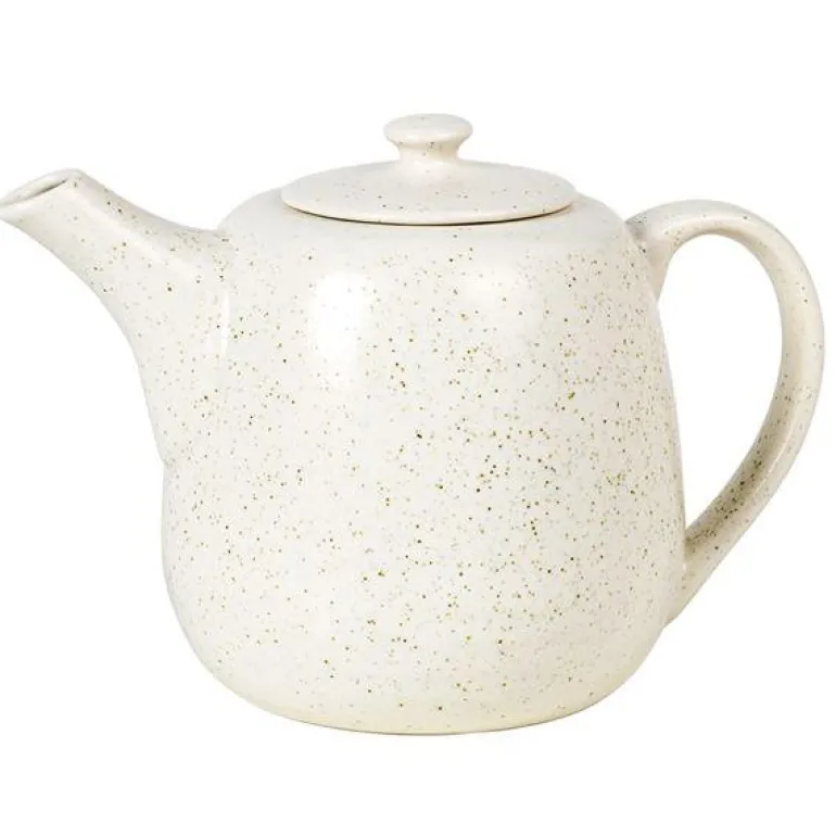 Tekanne 130 cl i Nordic Vanilla serien fra Broste Copenhagen. Bruk tekannen alene, eller kombiner den gjerne med de andre servisedelene i den flotte Nordic Vanilla serien. Den kan med fordel også brukes i en herlig avslappet miks av de andre populære serivsene fra Broste Copenhagen. Spettet som vaniljemelk; den glatte, men matte overflaten, med små svarte prikker som minner om vaniljekorn, kjennetegner Nordic Vanilla. En servisekolleksjon, fra Broste Copenhagen som stammer fra de populære nordiske linjer og hengivenhet til vakker glasur og sammenhengende design.Hver del av serviset innehar egenskapene til det skandinaviske designet ved å skape en rolig og innbydende estetikk rundt ethvert måltid. Alle delene i Nordic Vanilla serien er glasert for hånd, og da glasuren reagerer på skiftene under prosessen kan variasjon i farge og form forekomme. Dette gjør ethvert produkt helt unikt. Skap en klassisk borddekning med lyse og luftige off-white nyanser og gi bordet et tidløst rolig uttrykk eller kombiner Nordic Vanilla med deler fra andre serviseserier for en borddekking som føles samlet og kuratert med en unik identitet.