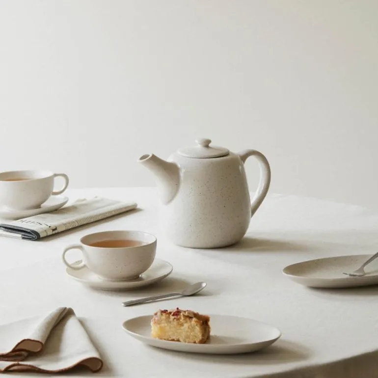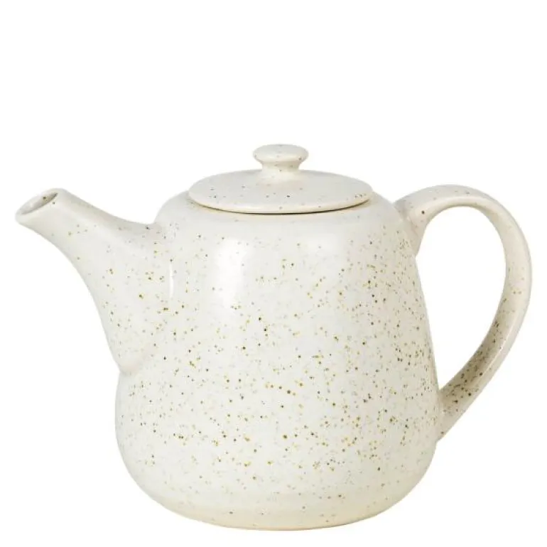 Tekanne til én, 70 cl, i Nordic Vanilla serien fra Broste Copenhagen. Bruk tekannen alene, eller kombiner den gjerne med de andre servisedelene i den flotte Nordic Vanilla serien. Den kan med fordel også brukes i en herlig avslappet miks av de andre populære serivsene fra Broste Copenhagen. Spettet som vaniljemelk; den glatte, men matte overflaten, med små svarte prikker som minner om vaniljekorn, kjennetegner Nordic Vanilla. En servisekolleksjon, fra Broste Copenhagen som stammer fra de populære nordiske linjer og hengivenhet til vakker glasur og sammenhengende design.Hver del av serviset innehar egenskapene til det skandinaviske designet ved å skape en rolig og innbydende estetikk rundt ethvert måltid. Alle delene i Nordic Vanilla serien er glasert for hånd, og da glasuren reagerer på skiftene under prosessen kan variasjon i farge og form forekomme. Dette gjør ethvert produkt helt unikt. Skap en klassisk borddekning med lyse og luftige off-white nyanser og gi bordet et tidløst rolig uttrykk eller kombiner Nordic Vanilla med deler fra andre serviseserier for en borddekking som føles samlet og kuratert med en unik identitet.