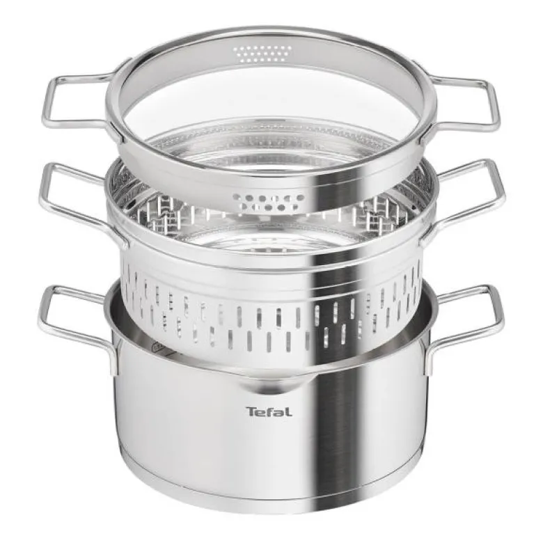 Tefals Nordica Steamer med dampinnsats og lokk, 4,8 L 24 cm, er en del av den elegante Nordica-serien som er inspirert av den nordiske livsstilens rene linjer og funksjonelle design. Laget av rustfritt stål av høy kvalitet, denne damperen er usedvanlig slitesterk og beholder formen over tid.