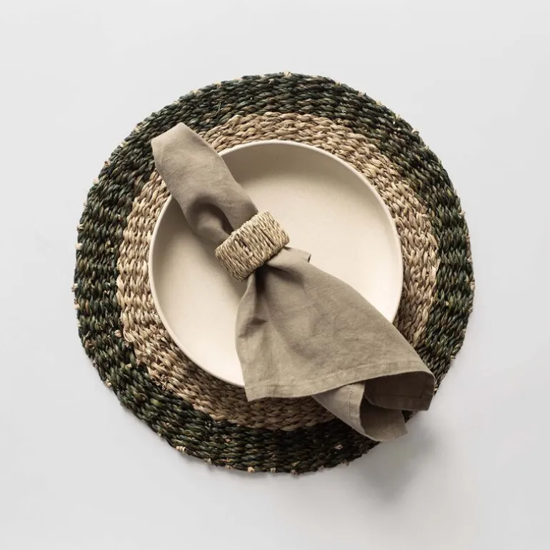 Siden hver ring er håndlaget, kan farger og teksturer variere noe, noe som gjør hver borddekking personlig og levende. Nori serviettringene er naturlig farget og selges i en pakke med fire, perfekt for å gi bordet et stilrent og organisk preg.
