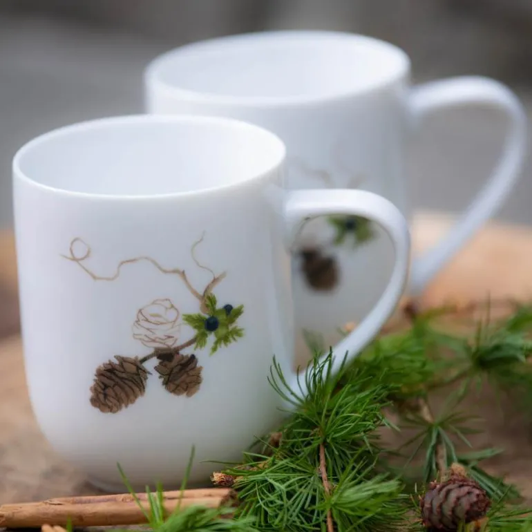 NOSTALGI består av ti deler; gourmettallerken/dekketallerken/fat 31 cm, flat tallerken 27 cm, dyp tallerken 23 cm, frokosttallerken 22 cm, asjett 14 cm, krus 35 cl, müsli/dessert 15 cm, bolle 23 cm, bolle/fat 31 cm og serviettring 4,7 cm. Design og dekor er gjennomført ned til hver minste detalj med et tidløst uttrykk, og er laget av beste ultraboneporselen med slitesterk glasur og høy styrke. Delene kan brukes både i mikrobølgeovn og i oppvaskmaskin.