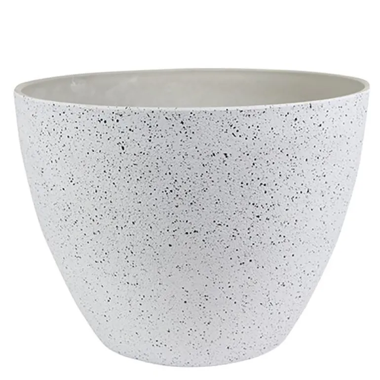 Nova blomsterpotte fra Gus, laget av 50% plast og 50% stenstøv. Plasten er 100% resirkulert, og produktet kan resirkuleres igjen. Potten er designet for utendørs bruk og har dreneringshull som sikrer optimal vekst for plantene dine. Med sin lette vekt og matte overflate er denne potten både praktisk og estetisk tiltalende. Som en del av Nova-serien tilfører den en moderne og stilren touch til hagen, terrassen eller balkongen din.