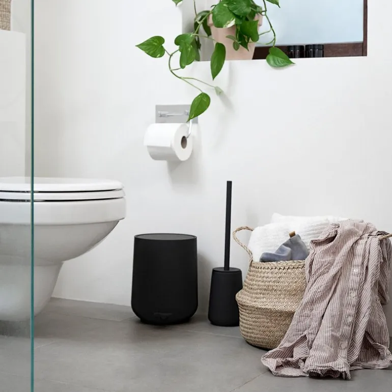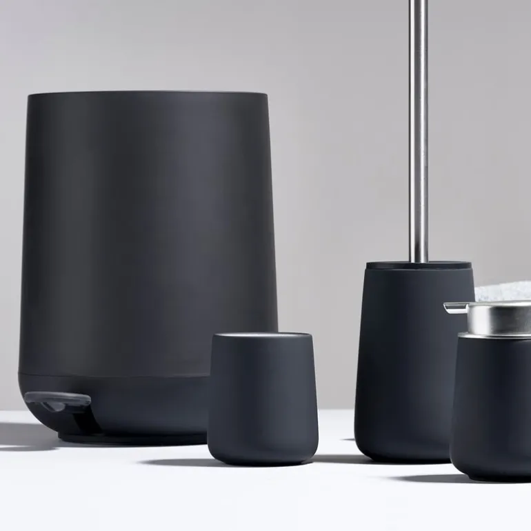 Nova pedalspann fra Zone Denmark kombinerer funksjonalitet med et stilrent uttrykk. Den matte, svarte overflaten og det strømlinjeformede designet gir baderommet et rolig og harmonisk preg.