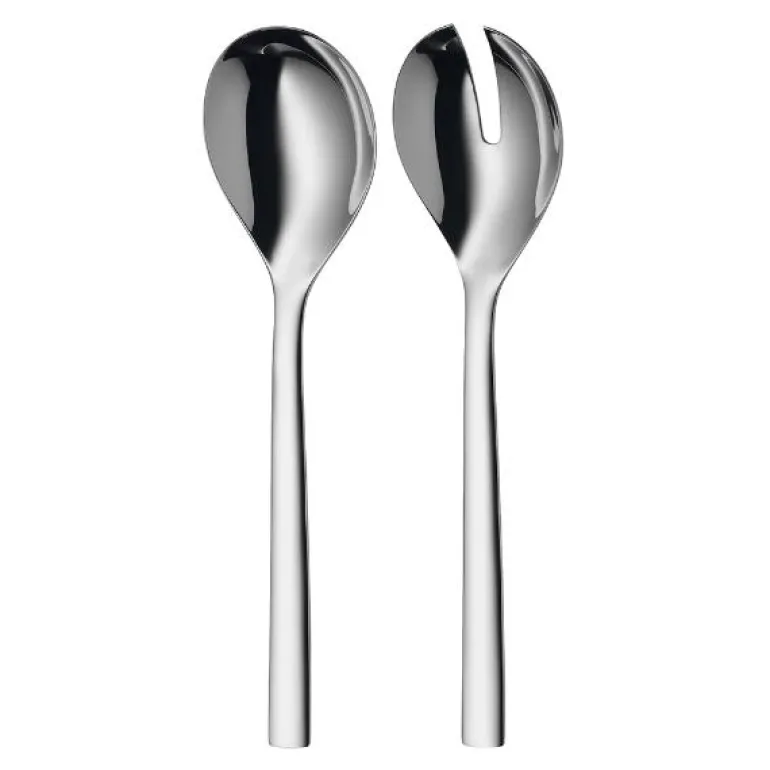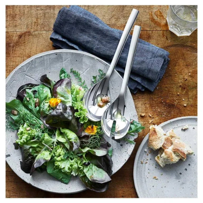 Bland, del opp, server: Det er ingen tvil, enhver frisk salat bør serveres med et salatbestikk. Det leveres i et sett med to skjeer med brede, flate blad så du lett kan fordele salaten og så overskytende væske kan dryppe av innen servering. De lange skaftene på bestikket gjør det lett å bruke og forhindrer også at de sklir ned i salatskålen.