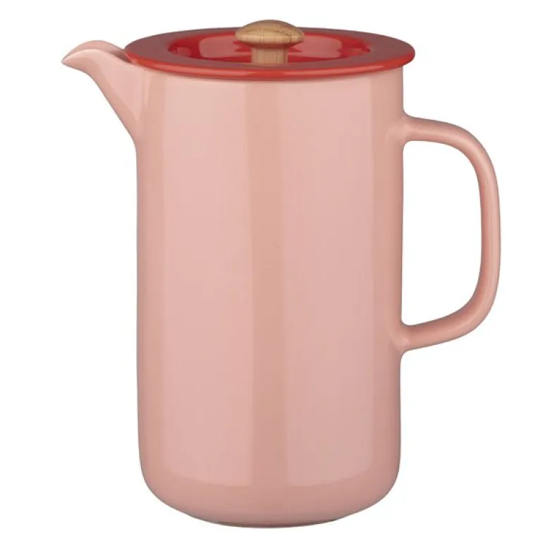 Start dagen med stil med Oiva presskanne fra Marimekko. Denne vakre kaffebryggeren er laget av keramikk og har en delikat lakserød glasur på kannen og en tomatrød glasur på lokket, noe som gir et dristig og moderne uttrykk.