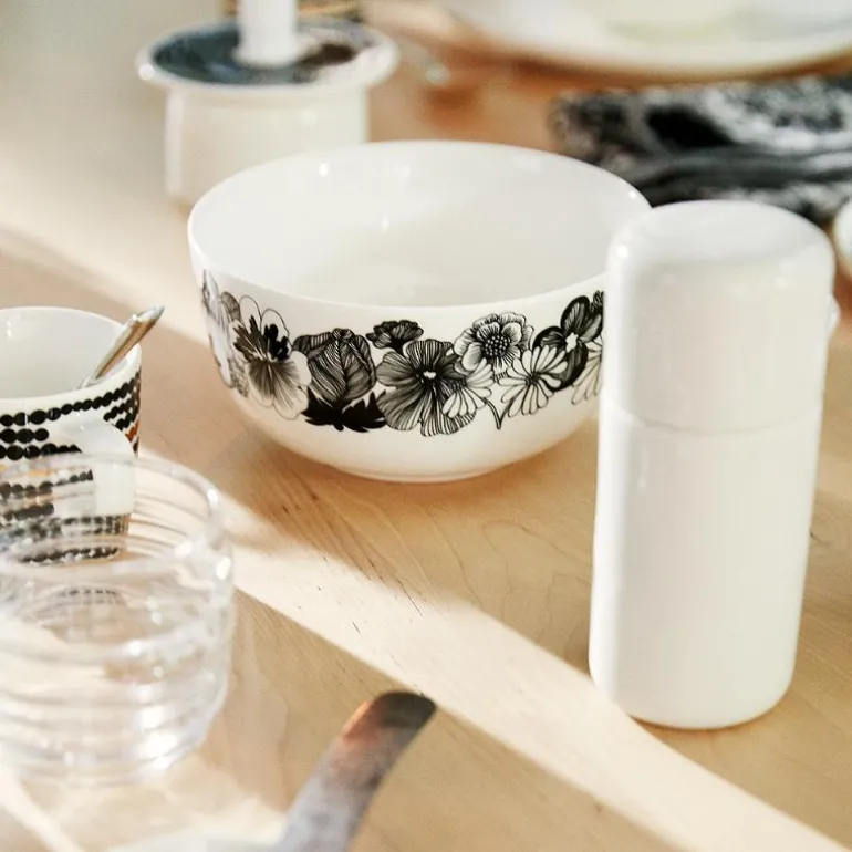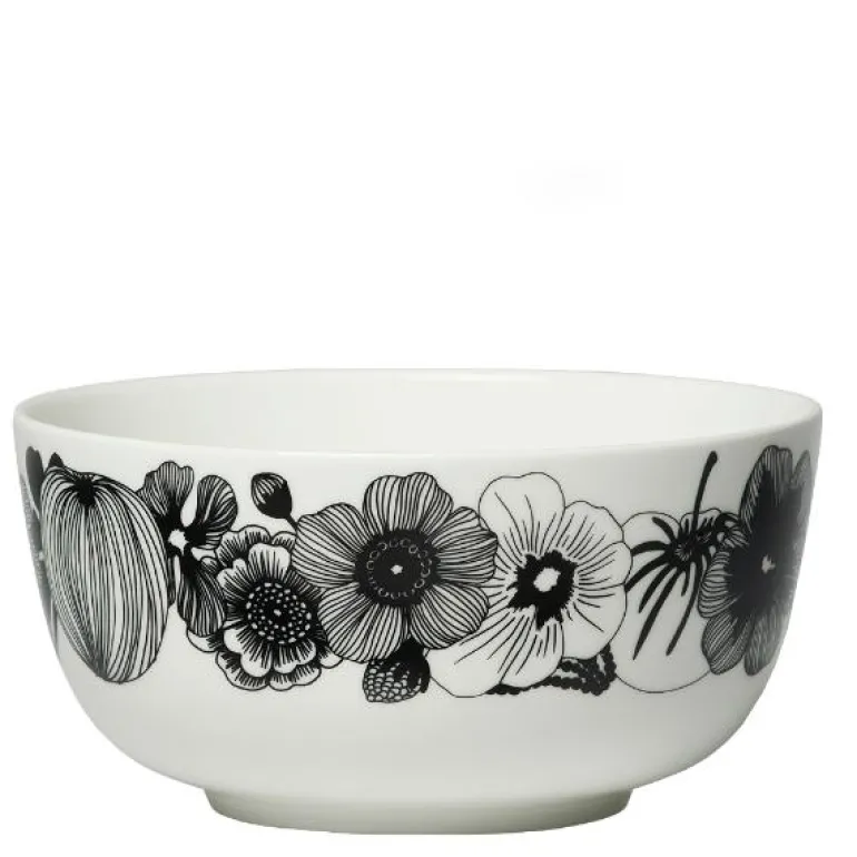 Denne serveringsskålen 9 dl er dekorert med Siirtolapuutarha mønsteret inspirert av kontrastene mellom by og natur i en kolonihage. Skålens form er designet av Sami Ruotsalainen, mønsteret er designet av Maija Louekari. Bollen er perfekt for nudler eller salater.
