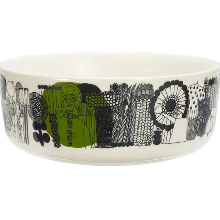 Siirtolapuutarha (kolonihage) mønsteret på denne serveringsskålen forteller om en reise frå det travle sentrum til en kolonihage med blomster og grønnsaker.