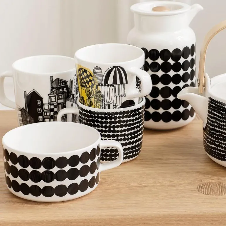 Siirtolapuutarha (kolonihage) mønsteret på denne skålen forteller om en reise frå det travle sentrum til en kolonihage med blomster og grønnsaker.