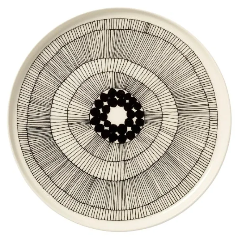 Denne tallerkenen i Oiva serien prydes av det klassiske Räsymatto mønsteret. Räsymatto er inspirert av klassiske Finske ragtepper.