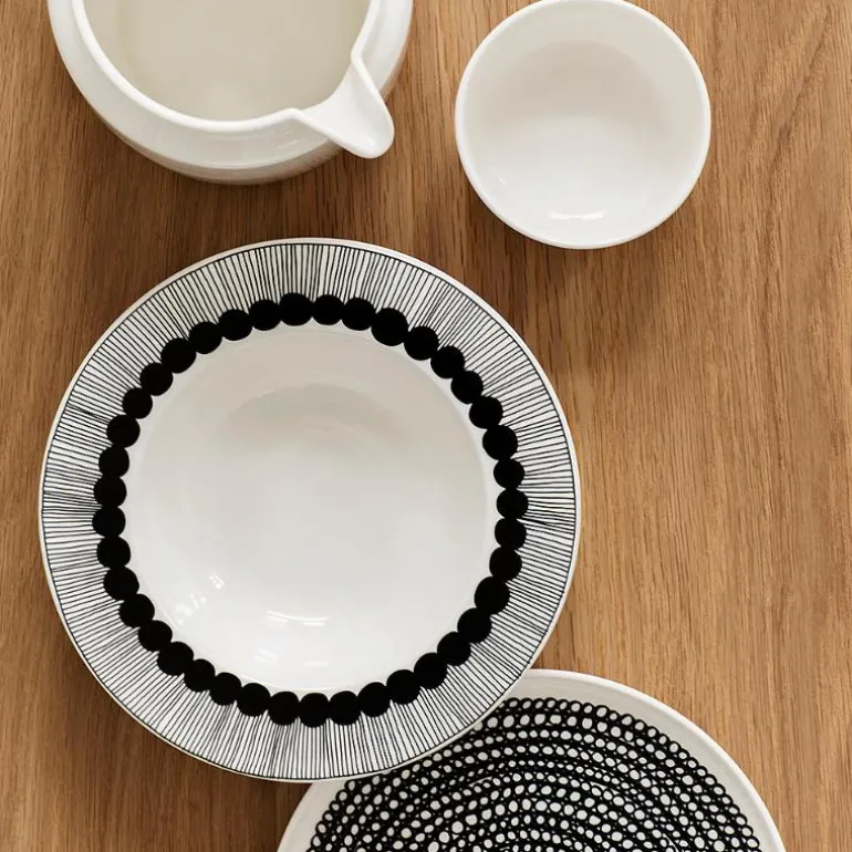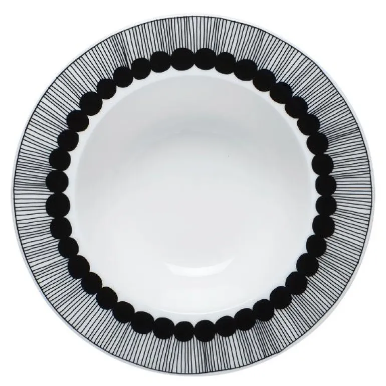 Denne dype tallerkenen i Oiva serien prydes av det klassiske Räsymatto mønsteret. Räsymatto er inspirert av klassiske Finske ragtepper.