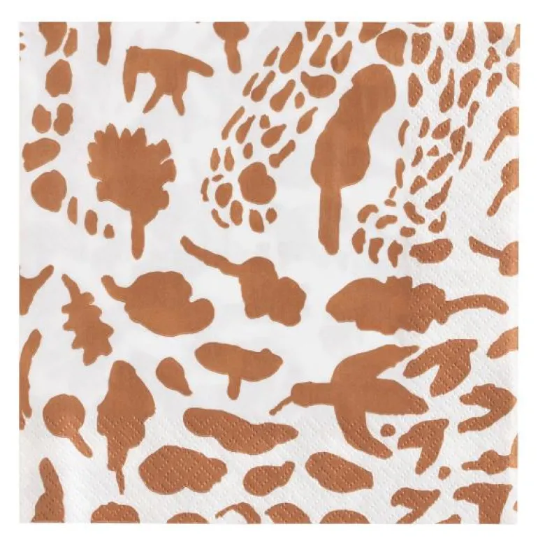 Inspirert av designlegenden Oiva Toikkas tegninger gir de nye papirserviettene i et muntert gepardmønster, varme til ethvert bord. Den populære størrelsen 33x33cm er perfekt til forrett, middag og dessert.