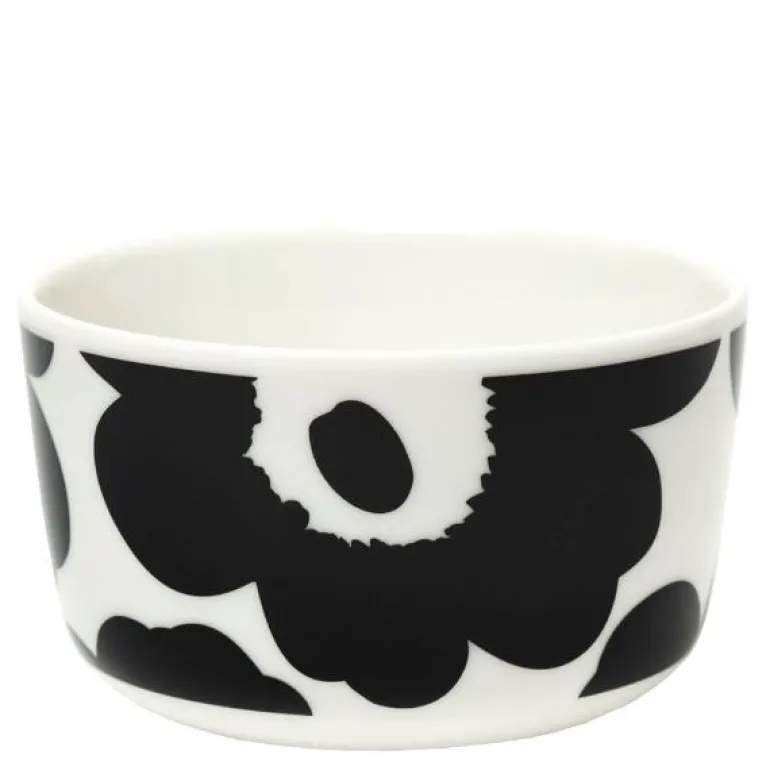 Liten Oiva skål 2,5 dl i det berømte Unikko mønsteret. Unikko (valmue) symboliserer kreativitet. Mønsteret ble laget i en tid da knapt noen blomstrete mønstre ble inkludert i Marimekkos kolleksjoner. Maija Isola var imidlertid fasinert av blomstertemaet og bestemte seg for å lage et stort utvalgt av nye blomstermønstre i 1964. Et av dem var nå ikoniske Unikko.