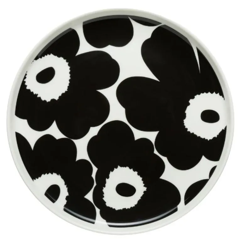Oiva frokost tallerken 20 cm i det berømte Unikko mønsteret. Unikko (valmue) symboliserer kreativitet. Mønsteret ble laget i en tid da knapt noen blomstrete mønstre ble inkludert i Marimekkos kolleksjoner. Maija Isola var imidlertid fasinert av blomstertemaet og bestemte seg for å lage et stort utvalgt av nye blomstermønstre i 1964. Et av dem var nå ikoniske Unikko.