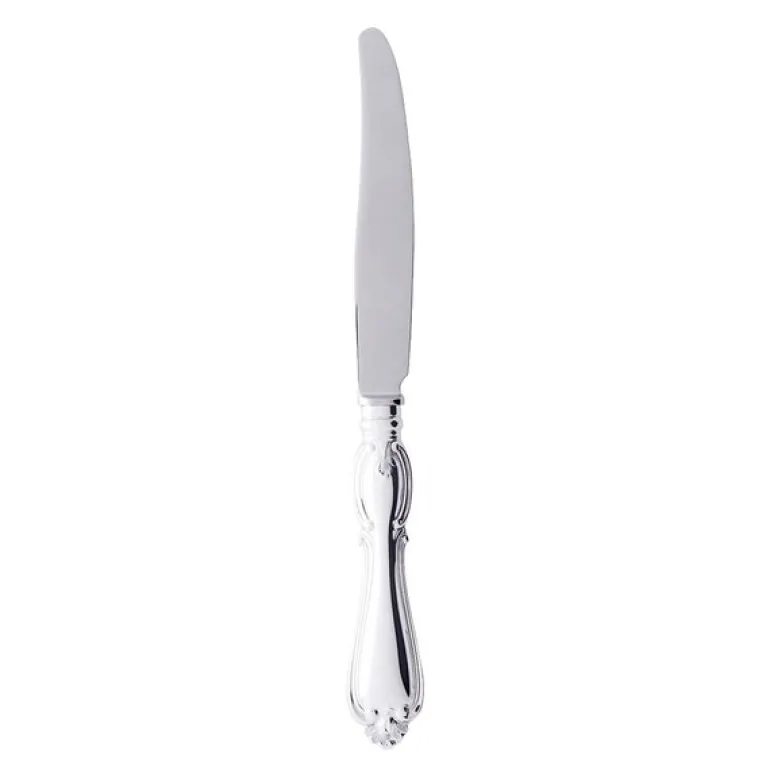 Olga kniv 24 cm EPNS fra Gense. Olga har sin opprinnelse i den engelske nyrokokkoen fra 1800-tallet. Bestikket er designet for å passe til den tidens storstilte borddekkinger, med krystallglass og vakkert brettede servietter. Og det gjør seg minst like godt i dag – uavhengig av stil og omgivelser. Med sine levende bladmønstre er det en design som tar form og blir til noe man snakker om rundt bordet. Design: Studio GAB