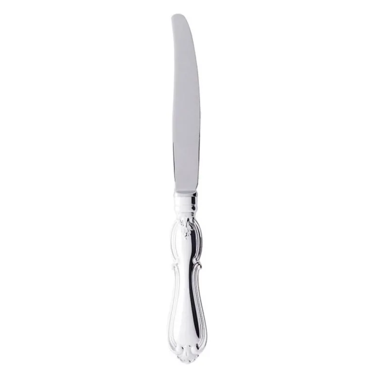 Olga lunsjkniv 20,9 cm 830 fra Gense. Olga har sin opprinnelse i den engelske nyrokokkoen fra 1800-tallet. Bestikket er designet for å passe til den tidens storstilte borddekkinger, med krystallglass og vakkert brettede servietter. Og det gjør seg minst like godt i dag – uavhengig av stil og omgivelser. Med sine levende bladmønstre er det en design som tar form og blir til noe man snakker om rundt bordet. Design: Studio GAB
