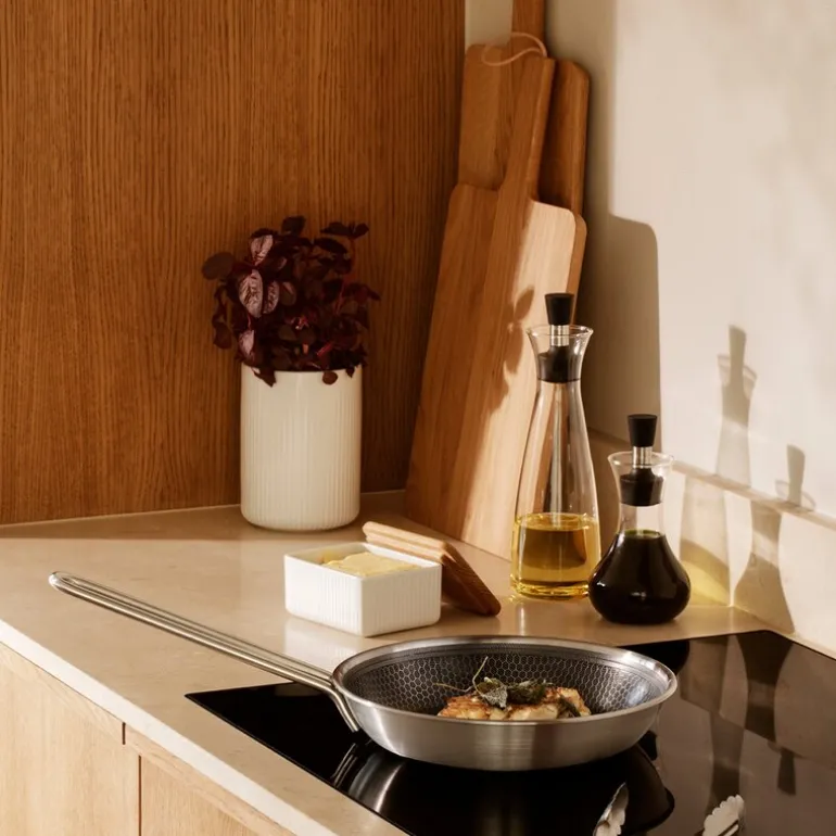 Lag og server dressing på en enkel og elegant måte med Eva Solo dressingshaker. Fyll opp med ingredienser, rist godt, og hell dressingen rett på salaten – den dryppfrie helletuten sikrer sølefri servering.