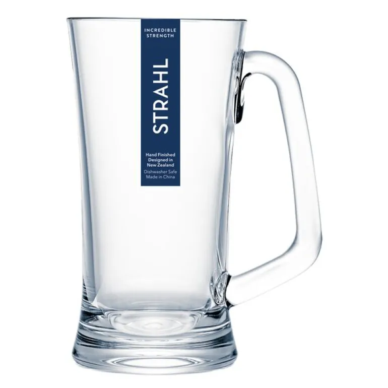 Ølmugge med hank 50 cl i polykarbonat fra Strahl gir deg stilen til tradisjonelt glass i en uknuselig og trygg utgave. Glassene leveres i elegante gaveesker og har håndpolerte skjøter som gir en ren og eksklusiv finish. Det ideelle valget for både hverdag og fest.