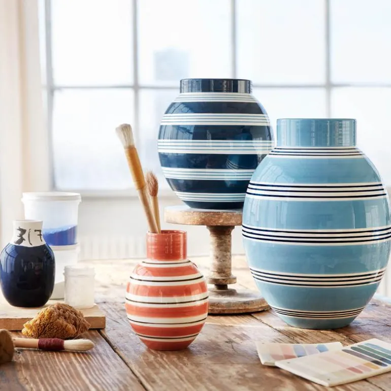 Omaggio Nuovo er en håndmalt vaseserie fra Kähler. Det er en fornyelse av den kjente Omaggio serien, som første gang ble lansert i 2008 og i dag er en moderne klassiker. Da Ditte Reckweg og Jelena Schou Nordentoft – mere kjent som designduoen Stilleben – ga nytt liv til Omaggio vaseserien, ønsket de å skape en moderne hyllest til Kählers verdensberømte kunsthåndverk. Omaggio Nuovo, som nettopp betyr ”ny hyllest” på italiensk, et gjenkjennelig, men allikevel fornyende signaturdesign i Kählers kolleksjon. Stilleben har forsket tilbake i Kählers gamle arkiver for at gjenoppdage fargerike, lekende nye måter å tilføre striper på vasene. Den nye Omaggio Nuovo har fått en oppdatering av form, og har en visuell gjenkjennelighet samt noe referanse til gamle Kähler vaser. De håndmalte stripene gir dybde og liv, og forteller om håndverket som ligger i hver unike vase. Farger og striper i glasurene er inspirert av de gamle stripete vasene, og valgt med en respekt og interesse for gammel kunsthistorie.. Med sitt ikoniske formspråk og håndmalte striper hyller Omaggio Nuovo det historiske håndverket og appellerer ut til blomsterentusiaster og designelskere.