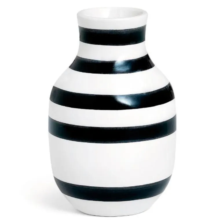 Vasens voluminøse form og myke formspråk kompletterer de håndmalte svarte stripene. Det stilrene og eksklusive uttrykket sikrer Omaggio-vasen en lang levetid. Omaggio-seriens klare uttrykk kan enkelt kombineres med de tingene du allerede har. La den svartstripede vase inngå i et dekorativ designtablå med Omaggio-seriens andre farger og størrelser.