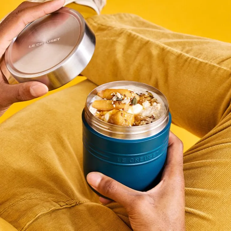 Le Creusets On the Go-kolleksjon er designet for en aktiv livsstil og kombinerer funksjonalitet med merkets ikoniske design. Serien inkluderer også praktiske matbokser, termoflasker og kopper i ulike størrelser, alle skapt med samme kvalitet og detaljer som kjennetegner Le Creuset. Enten du pendler til jobb, tar en pause på fjellet eller planlegger en piknik i parken, gir mattermosen deg friheten til å nyte et hjemmelaget måltid hvor som helst. Med Le Creusets anerkjente kvalitet og elegante design er On the Go mattermos 0,5L den ideelle følgesvennen for en travel hverdag.