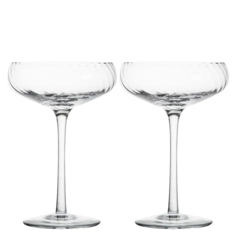Opacity Champagne cup er designet for den perfekte opplevelsen – på bordet, i hånden og mens du drikker. Det er en tynn og klar champagnekopp med et vakkert spunnet glassmønster i klart glass. Også nyttig til dessert eller morgenjuice for en mer festlig følelse. Et design som har den perfekte kontrasten mellom luksus og cockiness. Design Byon Studio. Leveres i 2-pakninger i Byon-boks.
