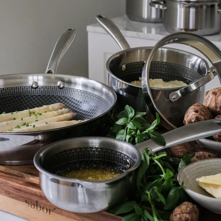 Optimal stekepanne 28 cm fra Sabor er et uunnværlig redskap på kjøkkenet, spesielt utformet for å levere profesjonelle resultater. Med sitt keramiske slipp-lett belegg og unike laseretsede design, skapes det små luftlommer som tillater oljer og kjøttsafter å trenge inn mellom maten og stekepannen. Dette gir saftigere mat med en sprøere stekeskorpe, samtidig som du kan redusere bruken av fett og olje, noe som gjør matlagingen sunnere. Den robuste konstruksjonen tillater også bruk av stålredskaper uten å skade belegget.