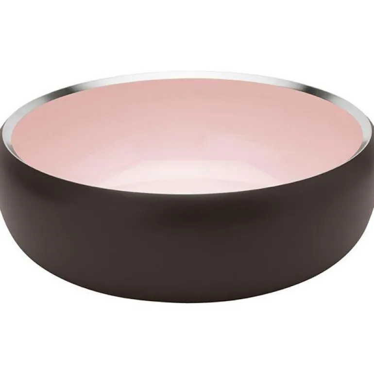 Ora-serien leker med kontrastene mellom det enkle rå stålet og de bløte organiske formene og naturlige farger, som serien inneholder. Denne symbiosen mellom former og materialer resulterer i varm, minimalistisk eleganse. Skålenes matte ytterside kombineret med innsidens blanke overflate danner et spill av lys og refleksjoner, som brytes av den karakteristiske stålkanten. Kanten tilfører de bløte formene en overraskende dimensjon, hvor materialevalget blottes bak den fargede pulverlakkeringen.