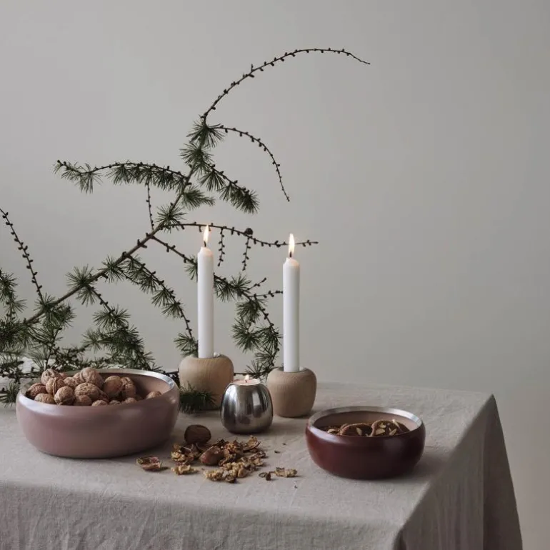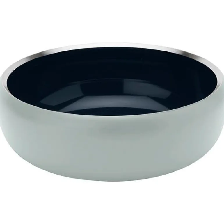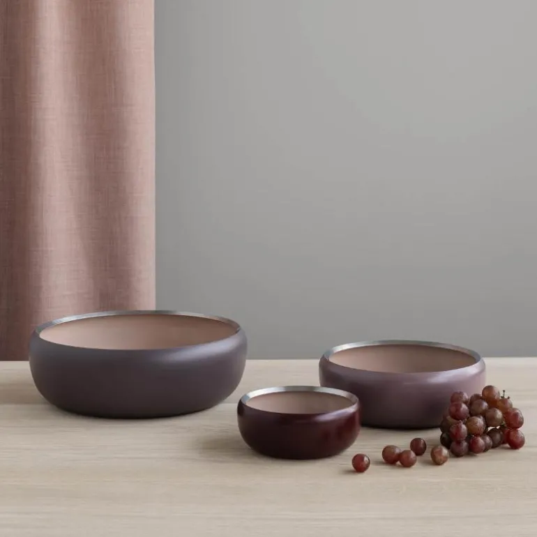 Ora-serien leker med kontrastene mellom det enkle rå stålet og de bløte organiske formene og naturlige farger, som serien inneholder. Denne symbiosen mellom former og materialer resulterer i varm, minimalistisk eleganse. Skålenes matte ytterside kombineret med innsidens blanke overflate danner et spill av lys og refleksjoner, som brytes av den karakteristiske stålkanten. Kanten tilfører de bløte formene en overraskende dimensjon, hvor materialevalget blottes bak den fargede pulverlakkeringen.