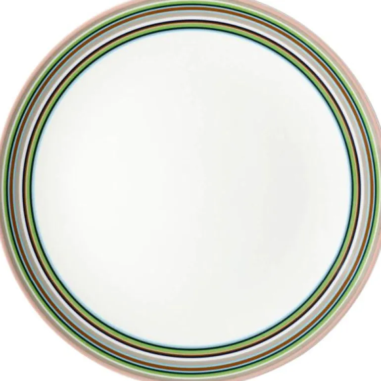 Det kjente, populære og fargerike serviset Origo fra Iittala er designet av Alfredo Häberli i 1999. Origo-serien fra Iittala med sin tidløse og lekre form er et perfekt eksempel på varig hverdagsdesign. Inspirasjonen til stripene fikk Alfredo Häberli fra regnbuen. Et flott hverdagsservise som er fint å mikse med serviset Teema fra Iittala. Origo er et smart valg da det er ildfast, kan fryses, tåler mikrobølgeovn og oppvaskmaskin. Fin som middags- eller lunsjtallerken.
