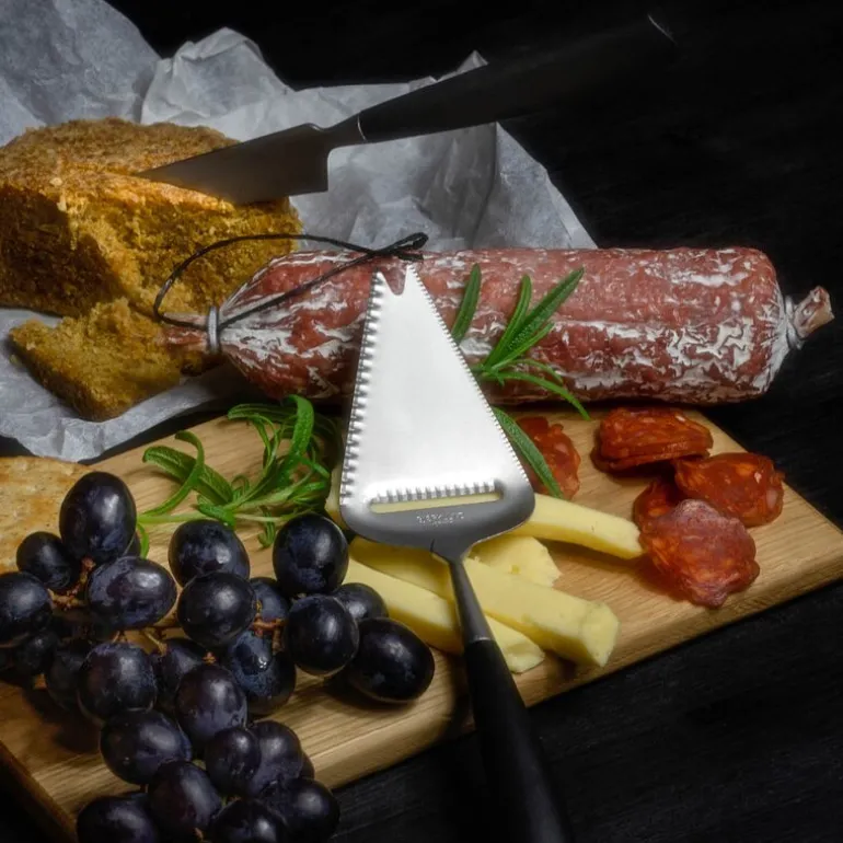 Bjørklund har originalpatent på ostehøvelen, og har produsert i Norge siden 1925. De er anerkjent for sin kvalitet i inn og utland. Egenskapene ligger i skjærets utforming, som er tilpasset type ost. Denne ostehøvelen passer til myke oster. Den har et smalere rillet skjær som gir tynne skiver, og spiss ende. Produsert i 18/8 stål med nylon skaft og er 24cm lang. Rengjøres i oppvaskmaskin.