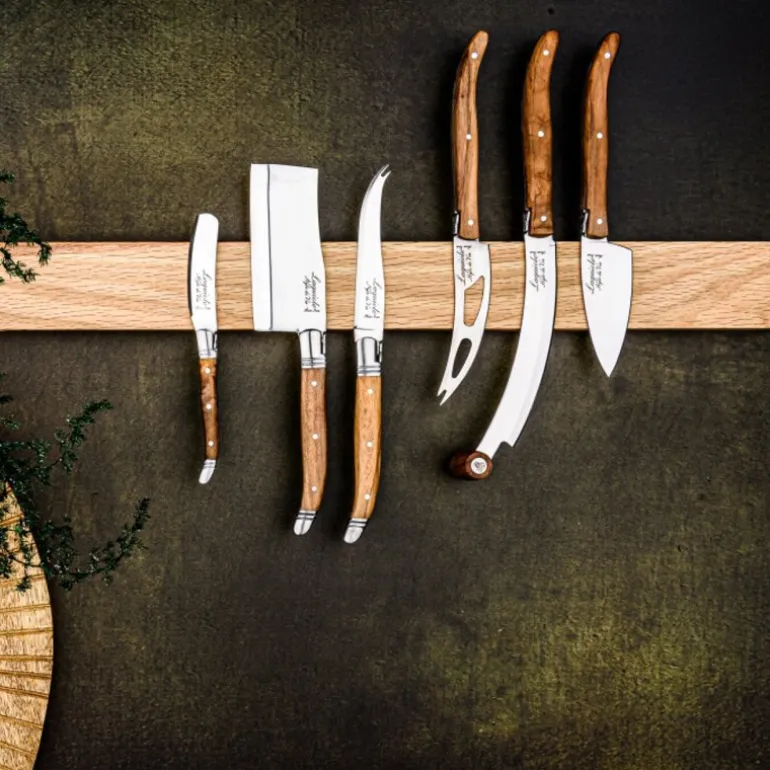 Laguiole Style de Vie presenterer et osteknivsett der håndverket virkelig kommer til uttrykk. De solide bladene på 2,5 mm kombinert med oliventre gir både tyngde og raffinement. Dette settet er ikke bare et funksjonelt serveringsverktøy, men også en dekorativ detalj som hever borddekkingen.