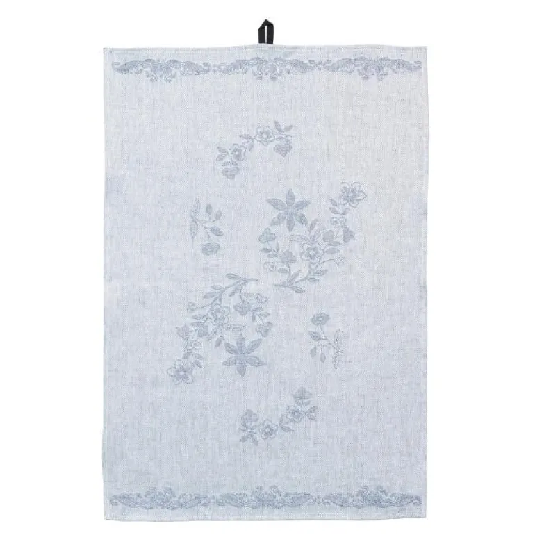 Ostindia kjøkkenhåndkle 47x70cm. Ostindia kjøkkenhåndkle i 100 % lin er et serveringstilbehør med mange bruksområder. Bruk håndkleet for servering ved bordet eller på kjøkkenet. Håndkleet har en praktisk hempe for oppheng. Den klassiske floraen gir et snev av eleganse og kompletterer en borddekking med Ostindia-porselen.