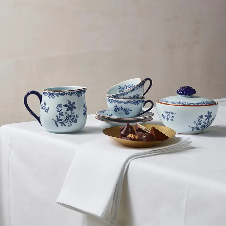 De vakre porsjonsskålene fra Ostindia har et klassisk design med et blomstermønster i blått. Server krydder eller sauser, eller bruk den som dessertskål. Designet kan takke en tilfeldighet for sin eksistens: et porselensskår fra Sørøst-Asia fant veien til et av Rörstrands skap, for så å bli gjenoppdaget.