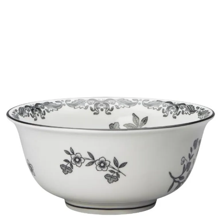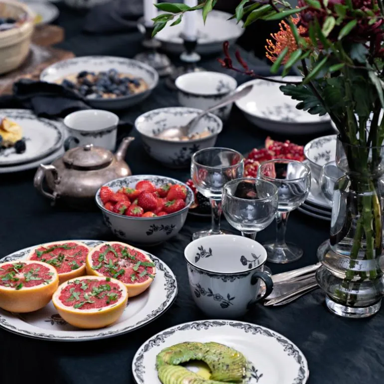 Skålen fra Ostindia Svart har mange ulike bruksområder. Bruk den generøse skålen til middagen eller server snacks i den. Det svarte blomstermønsteret skaper en sanselig hverdagsluksus. Ostindia er det nest eldste porselenet hos Rörstrand og fortsetter sin reise i svart med deler å elske og kombinere.