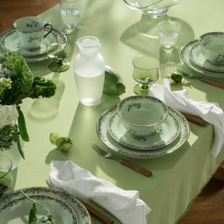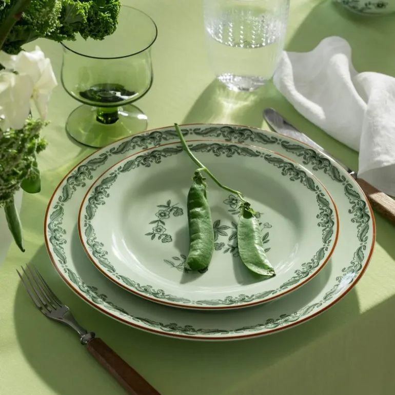 Ostindia tallerken 21 cm i grønn fra Rörstrand er en hyllest til svensk porselenshistorie. Den karakteristiske dekoren har sitt opphav i et skipsforlis i 1746, da en porselensskår ble berget og senere inspirerte til dette ikoniske serviset.