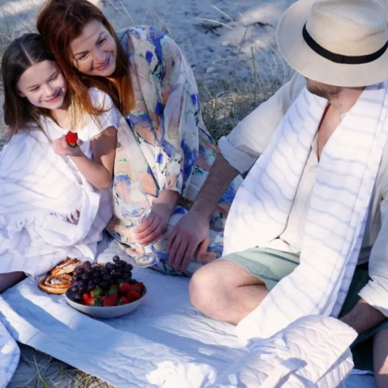 Gjør utendørslivet mer komfortabelt med Outdoor Collection sand beige piknikteppe fra Home by Ilse Jacobsen. Dette funksjonelle teppet på 120×180 cm er laget for å gi deg en myk og koselig overflate under pikniker, på stranden eller ved andre utendørsaktiviteter. Det er utstyrt med ekstra polstring for optimal komfort, og det praktiske designet gjør det enkelt å brette sammen og ta med seg takket være det integrerte håndtaket.