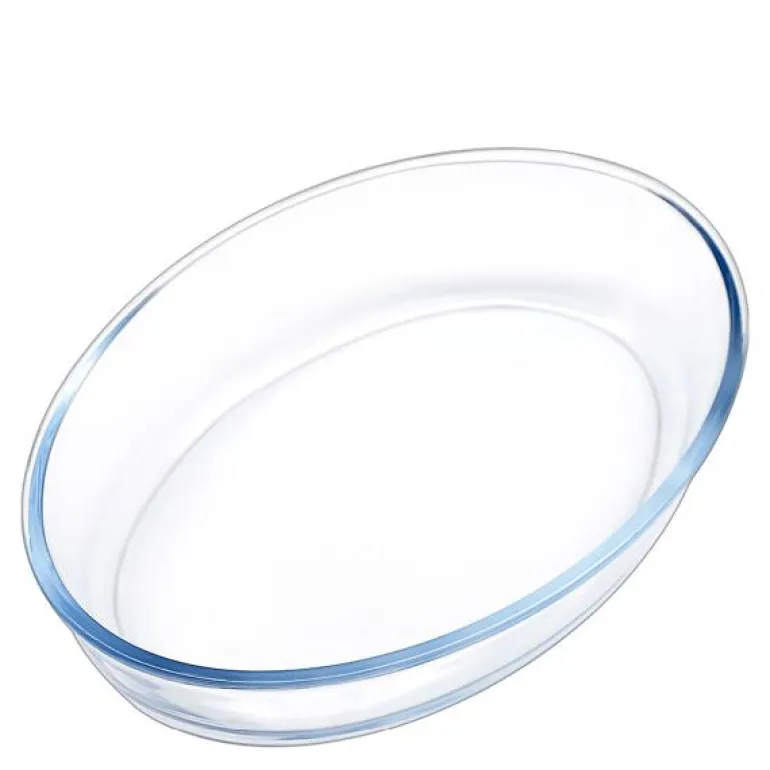 Middels stor oval ildfast form. Laget av borosilikatglass av næringsmiddelkvalitet, motstandsdyktig mot riper, tåler termisk sjokk på 200 ° C. Tåler ned til -40 °C i kroppsbygningen og opptil 300 °C i ovnen.