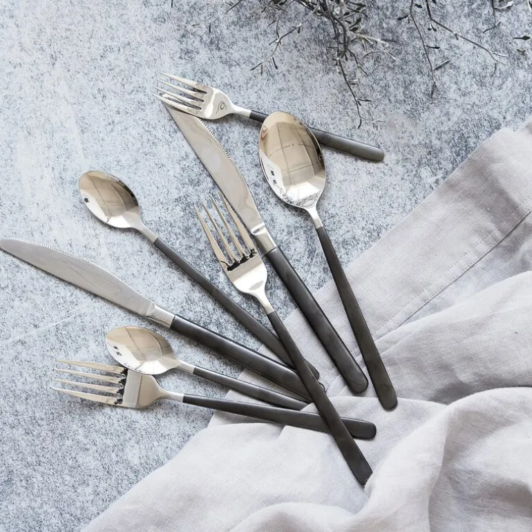 Ox bestikksett 16 deler fra House Doctor forener det klassiske og det moderne i én og samme design. Laget av rustfritt stål og dekorert med sorte og sølvfargede detaljer, gir det en spennende kontrast til både lyse og mørke serviser.
