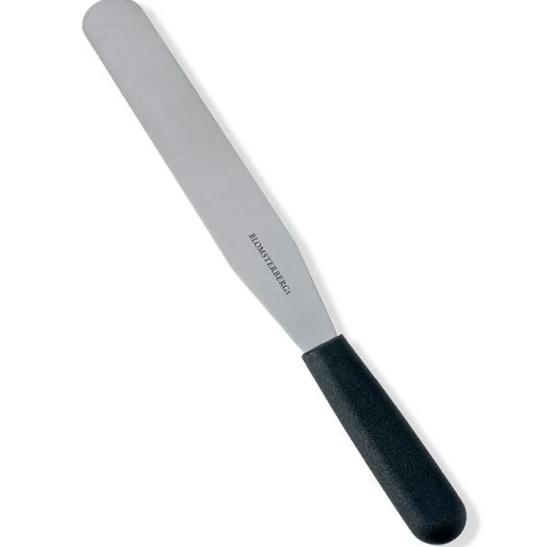 Rustfritt stål, PP plast håndtak, Egnet til oppvaskmaskin. Palettkniven er et av konditorens viktigste redskaper. Brukes til f.eks. til å smøre på kremer, smøre ut kakebunner, lage roser, snu pannekaker og mye mer. Fås i forskjellige lengder.