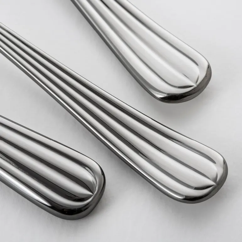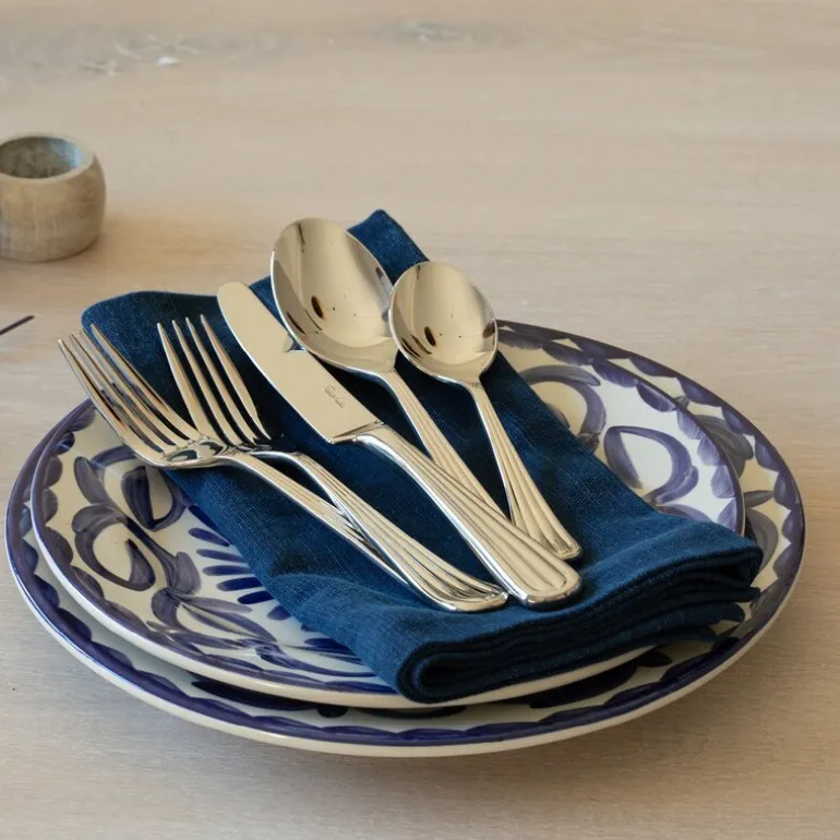 Palm bestikksett i 42 deler fra Robert Welch forener funksjonalitet og kunstnerisk design. Dette settet, laget for 6 personer, er en del av den unike Palm Bright-serien, kjent for sine innskrevne spor inspirert av palmeblader. Den speilpolerte finishen og de myke linjene gir settet en organisk eleganse som passer til enhver borddekking, fra hverdagsbruk til spesielle anledninger.