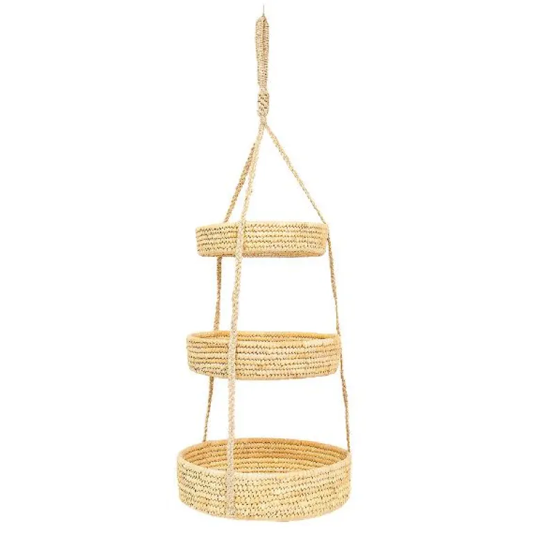 Palm trippel hengende kurv i jute fra A world of craft er en dekorativ og funksjonell oppbevaringsløsning i tre nivåer. Passer perfekt på kjøkkenet eller badet.