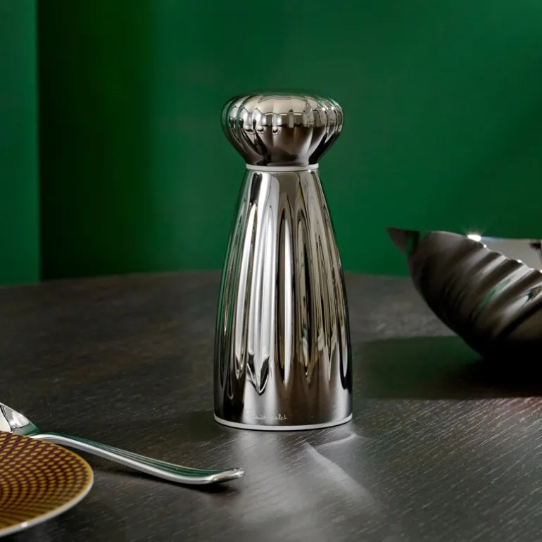 Palm saltkvern fra Robert Welch er et utsøkt tilbehør som forener moderne design og praktisk funksjonalitet. Denne saltkvernen, laget av høyglanspolert 18/10 rustfritt stål, har en karakteristisk rillet overflate som tilfører eleganse til ethvert bord eller kjøkken. Den hvite bunnen gir en diskret og funksjonell identifikasjon som saltkvern, og designet komplementerer perfekt Palm bestikkserien eller står som et unikt designelement på egen hånd.