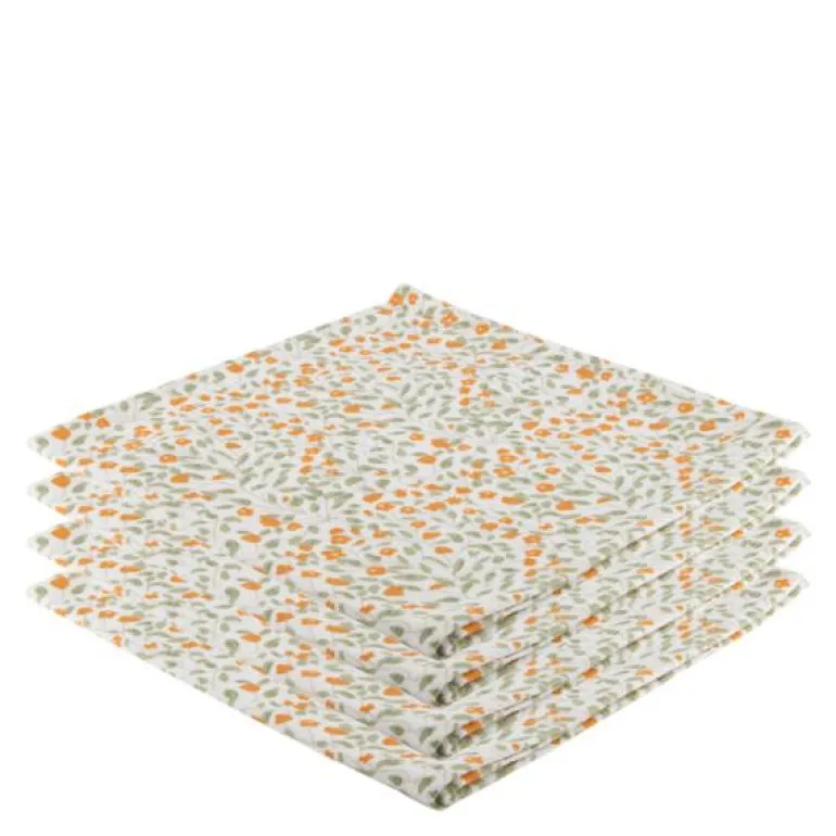 Sett med fire stykk servietter, Palma 45 x 45 cm i fargene hvit, grønn og oransje. Palma serviettene fra Holmen er utført i bomull.