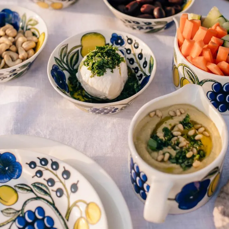 Paratiisi mugge 0.4L. Denne lille Paratiisi-muggen er perfekt for sauser eller kaffemelk. Det dristige og lyse mønsteret viser designeren Birger Kaipiainens unike evne til å kombinere farger. Paratiisi er en ekte Arabia designklassiker. Bruk muggen sammen med andre deler i Paratiisi-serien eller andre Arabia-serier.