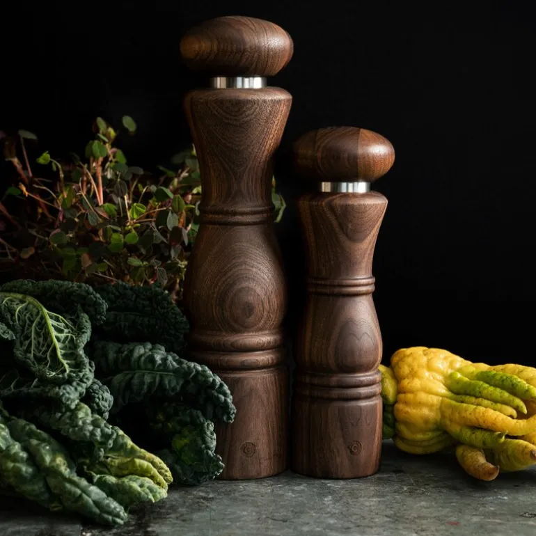 Paris krydderkvern fra CrushGrind er et elegant og imponerende verktøy for kjøkkenet, laget med en kombinasjon av vakker valnøtt og rustfritt stål. Med en høyde på 29 cm, gir kvernen et staselig inntrykk og er designet for å bringe både funksjon og estetikk til bordet. Navnet Paris er en hyllest til HKH Prins Henrik, kjent for sin store lidenskap for matlaging og sin franske bakgrunn, noe som gjenspeiles i den tidløse stilen.